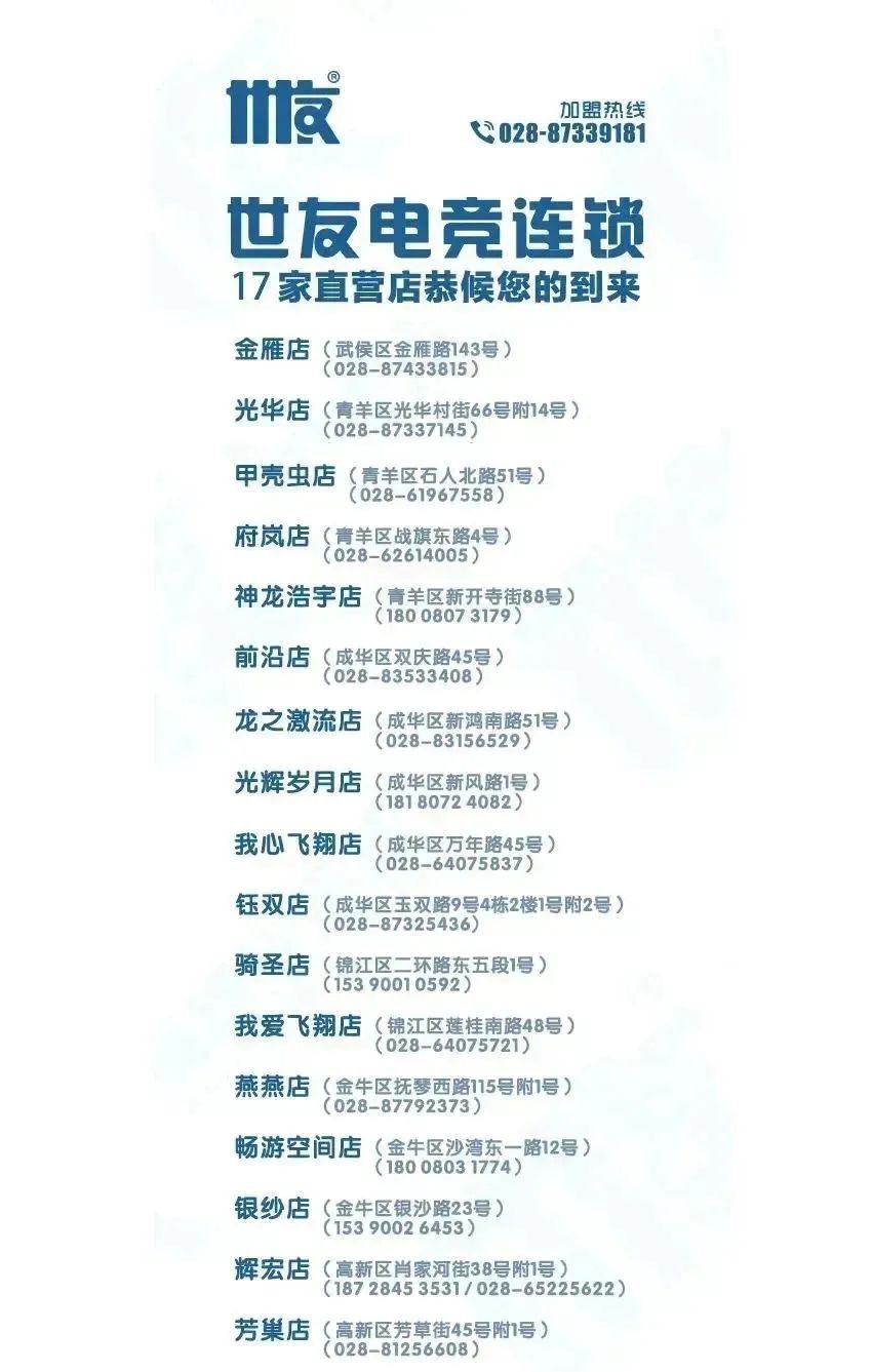 世友网吧连锁从2018年3月起,推出全新的加盟合作方式,欢迎咨询!电话:028-87339181
